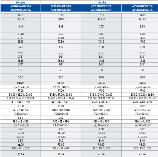 Thông số kỹ thuật Máy lạnh âm trần samsung non inverter R410a - 1 chiều lạnh