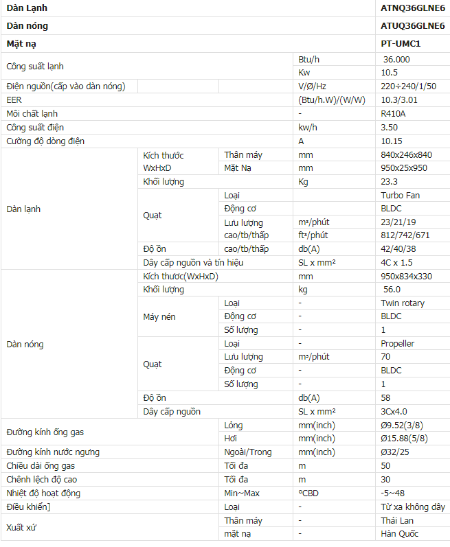 ATNQ36GNLE7/AUUQ36GH4 - 1pha